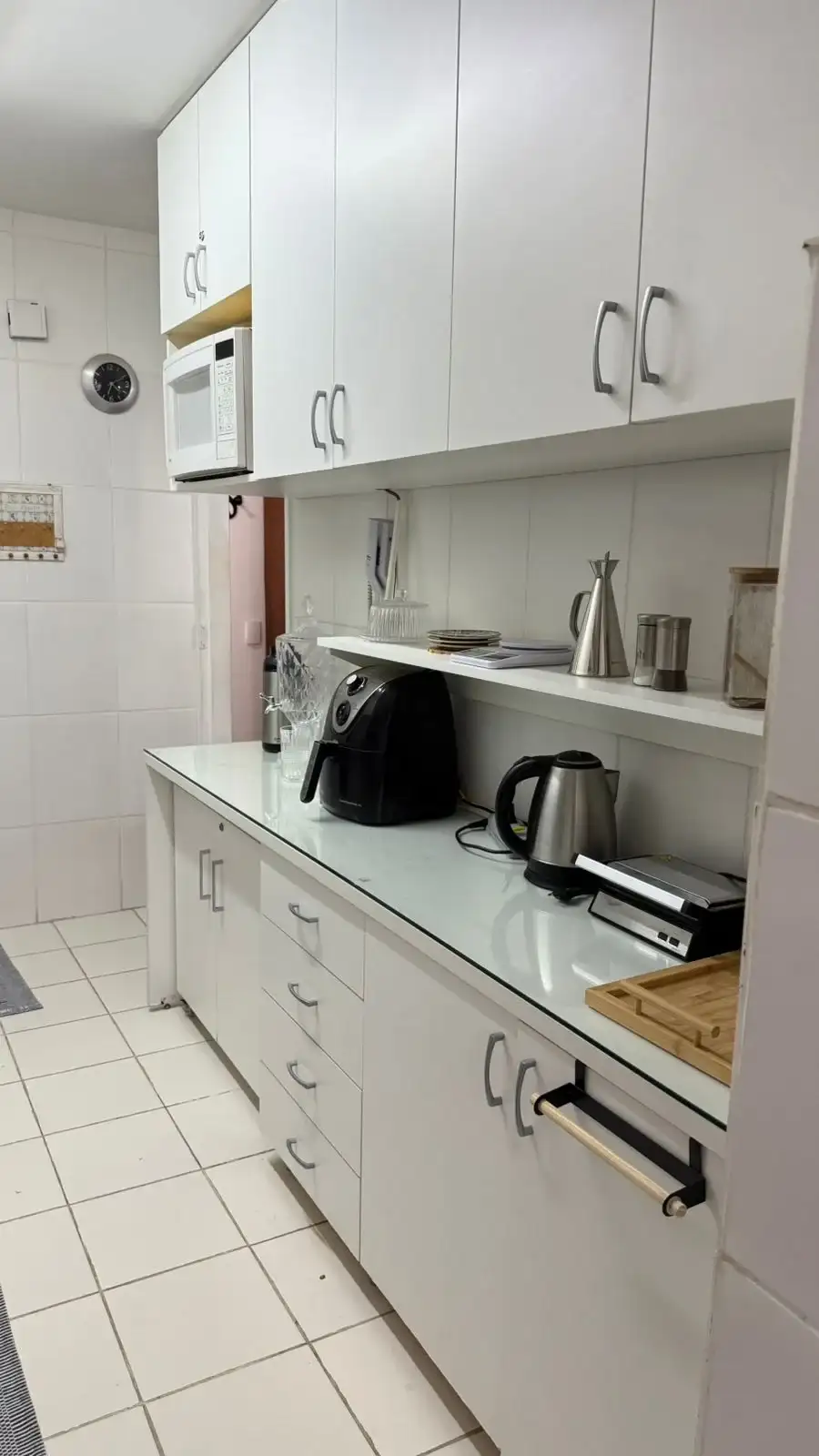 Possui hall, living para 2 ambientes, 3 dormitórios sendo 1 suíte, banheiro social, cozinha, armários embutidos, área de serviço, quarto e banheiro de empregada.